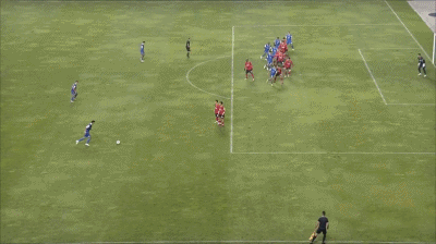 第36分钟,石家庄功夫任意球开到禁区,冈萨雷斯头球攻门顶偏