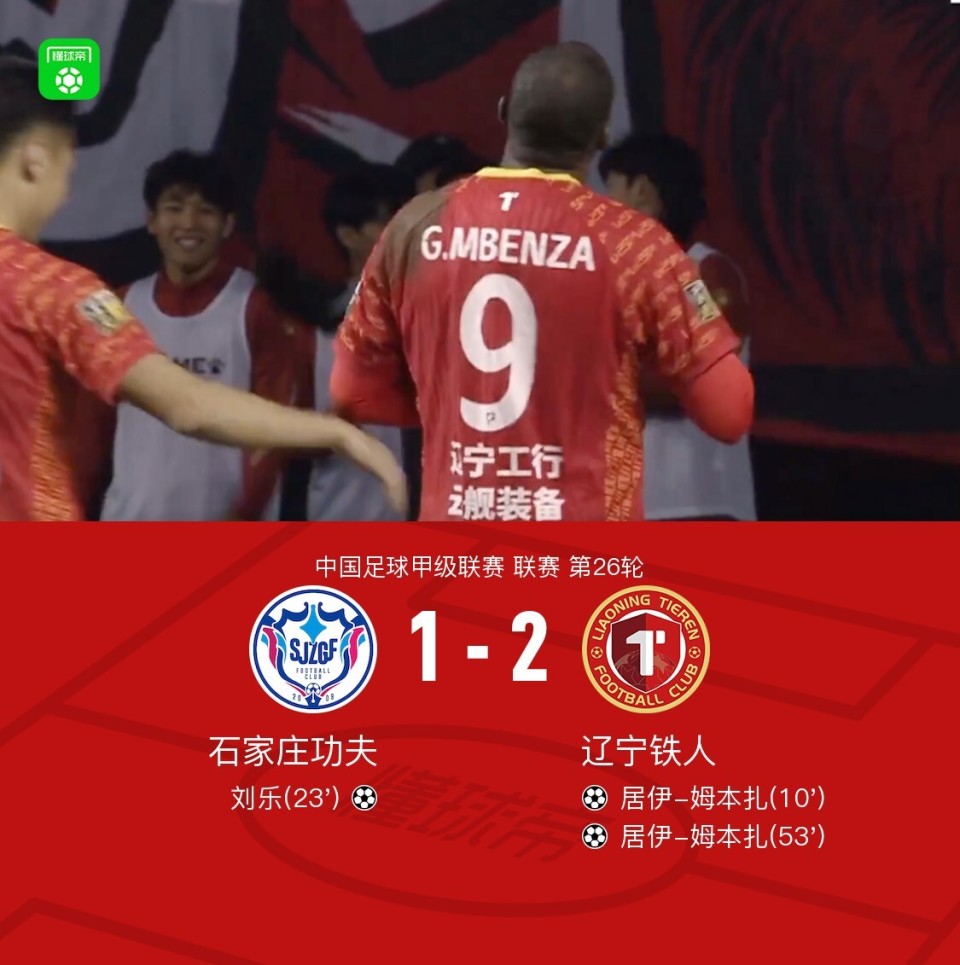 第10分钟,姆本扎扫射破门,辽宁铁人客场1-0领先